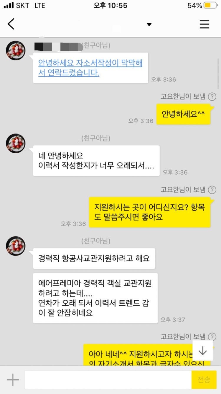 안녕하세요! 대기업에서 자기소개서 컨설팅만 10년 넘게 해온 베테랑입니다. 특히 항공사 자소서에는 누구보다 자신 있죠! 승무원부터 정비, 사무직까지 정말 다양한 직군의 합격자들을 배출해냈습니다. 이번에 후기를 남겨주신 분은 특히 기억에 남는데요, 솔직히 말씀드리면 거의 자소서 대필 수준으로 갈아엎었어요! 고객님이 전에 쓰셨던 자소서를 들고 오셨는데, 글자 수도 안 맞고 문장도 어색한 부분이 많아서 처음부터 다시 썼거든요. 어떻게 달라졌는지, 합격 비법은 무엇이었는지 지금부터 낱낱이 공개할게요!